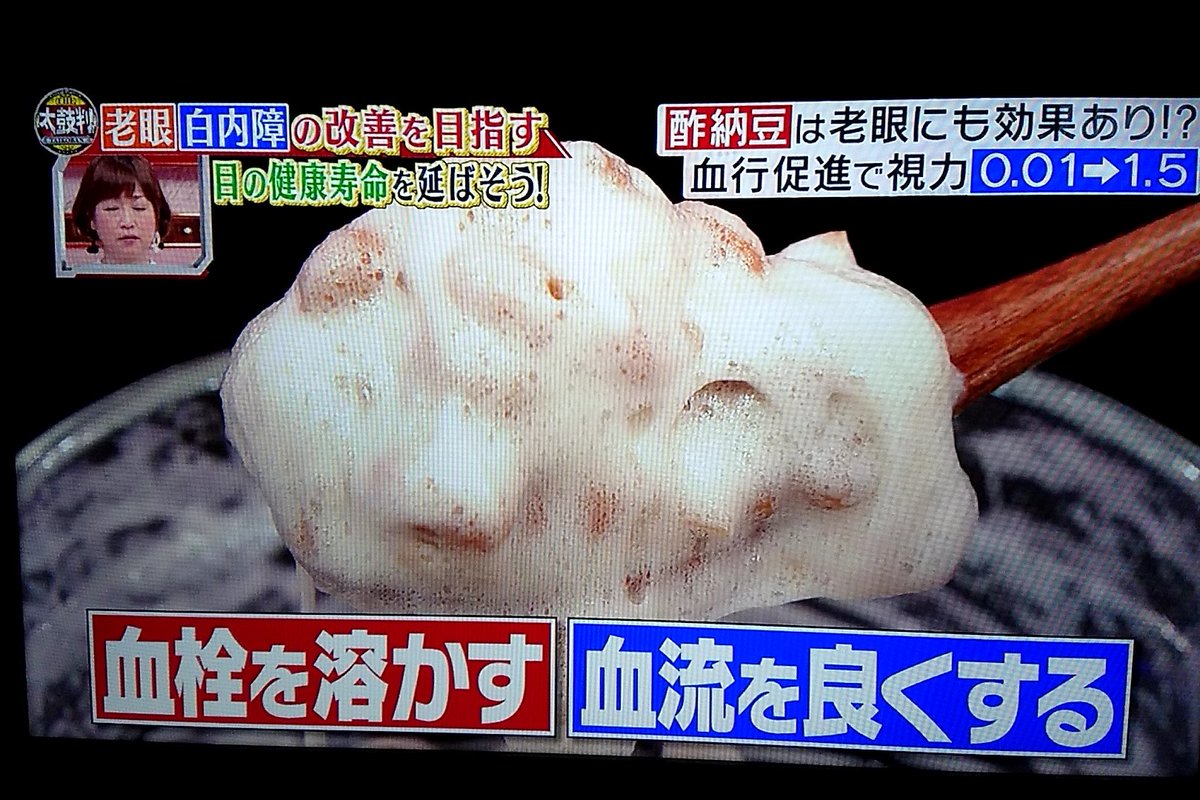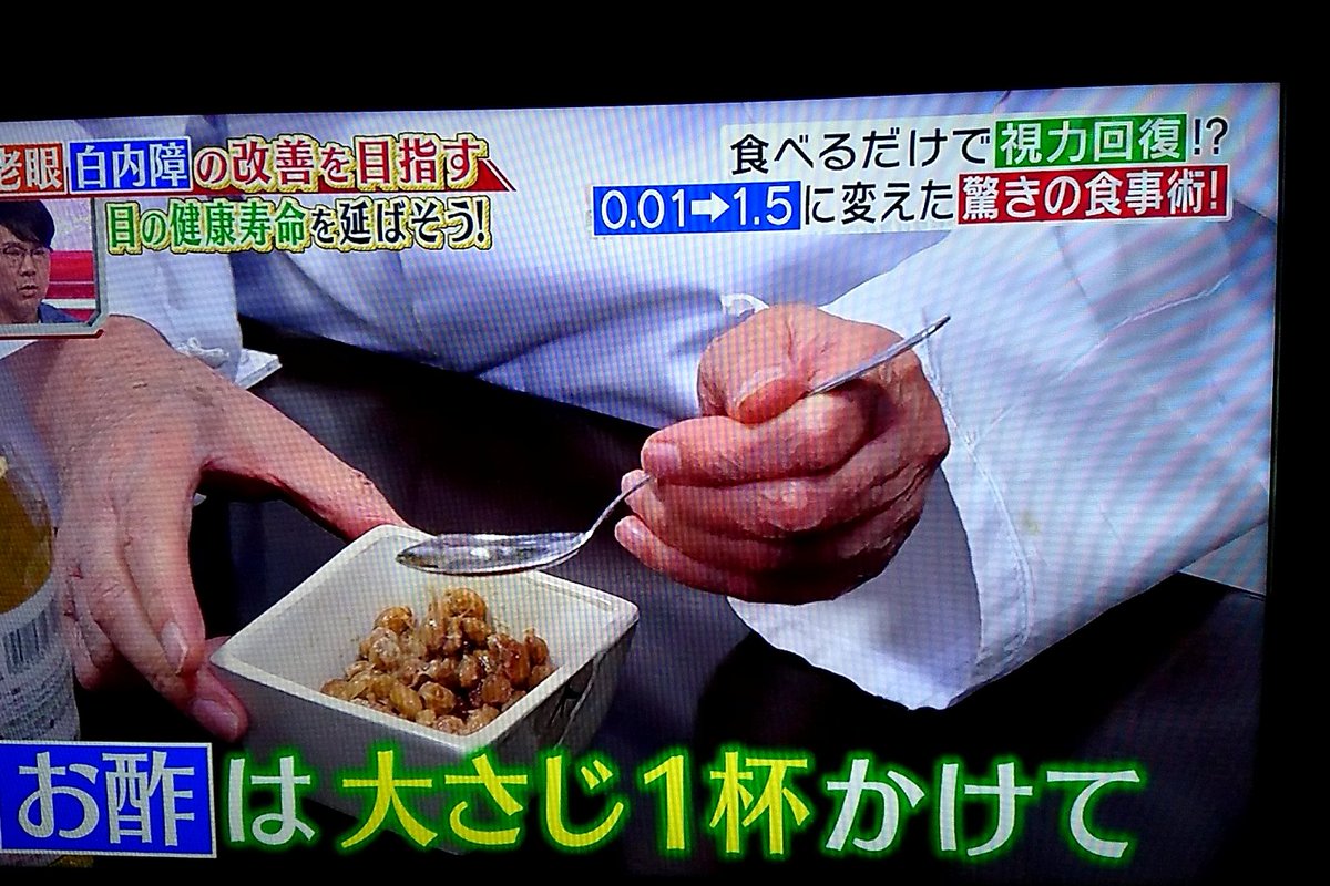 今回は、老眼・白内障・緑内障。目の健康寿命を延ばして老眼・白内障・緑内障に負けるなSP! 「酢納豆」が目に効く!? 白内障手術に密着! 緑内障予防 #tbs https://t.co/UkvdPwoV5u
