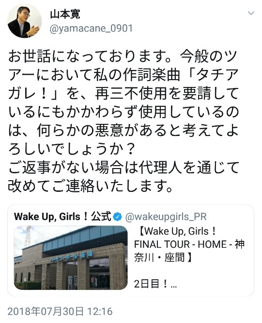 ヤマカンがWUGのタチアガレ権利うんぬんについて文句言ってる!【山本寛】